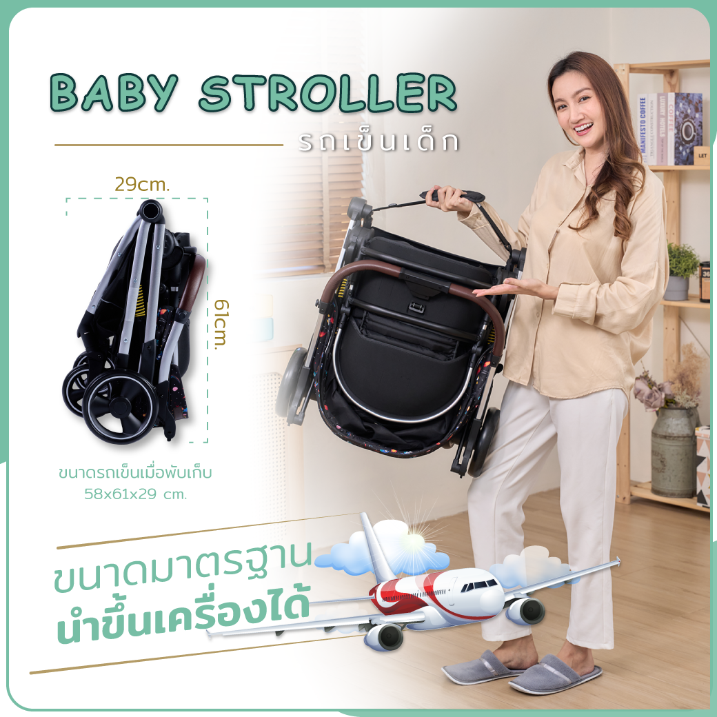 เป็นรถเข็นขึ้นเครื่องบินได้ ทำให้คุณพ่อคุณแม่สามารถพาลูกไปท่องเที่ยวที่ไหนก็ได้ โดยไม่จำเป็นต้องอุ้มตลอดเวลาให้เมื่อยตัว